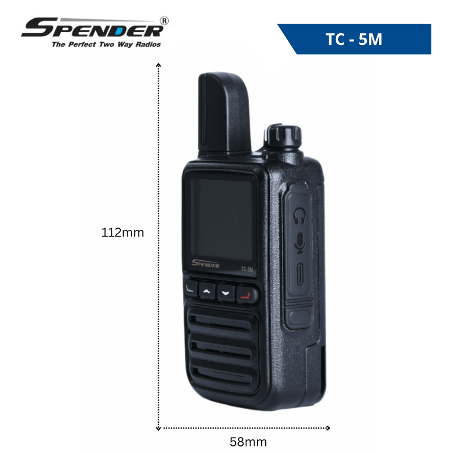Máy bộ đàm cầm tay 4G Spender TC-5M liên lạc không giới hạn khoảng cách toàn quốc. Màn hình LCD trực quan, pin 3000mAh, sạc Type-C. Giao tiếp đa kênh chuyên nghiệp cho vận tải, an ninh và sự kiện.