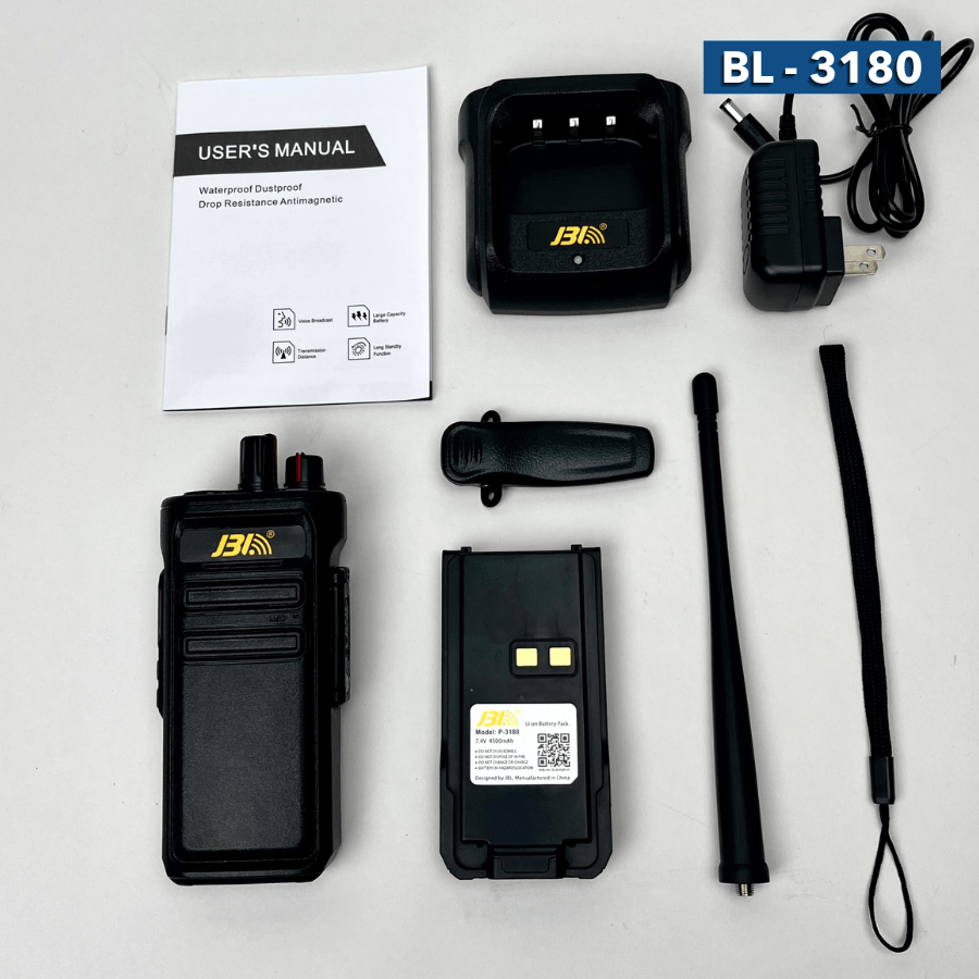 Bộ đàm cầm tay JBL BL-3180 sở hữu công suất phát mạnh mẽ lên đến 10W, cho khả năng xuyên thấu vật cản cực tốt và duy trì tín hiệu ổn định trong các tòa nhà cao tầng hay công trường.