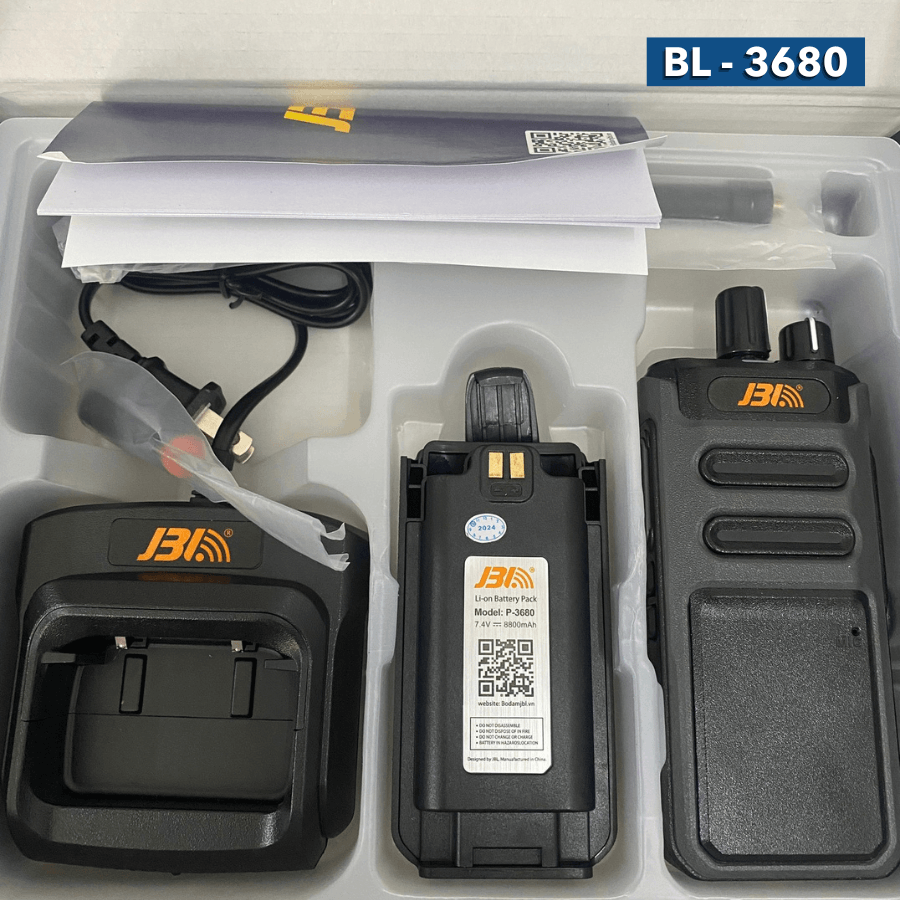 Bộ đàm cầm tay JBL BL-3680 sở hữu tính năng tự dò tần số thông minh và cổng sạc Type-C tiện lợi, giúp kết nối tức thì và linh hoạt mọi lúc mọi nơi. Với công suất phát mạnh mẽ và thiết kế bền bỉ, đây là giải pháp liên lạc xuyên thấu vật cản hoàn hảo cho mọi công trình và doanh nghiệp.