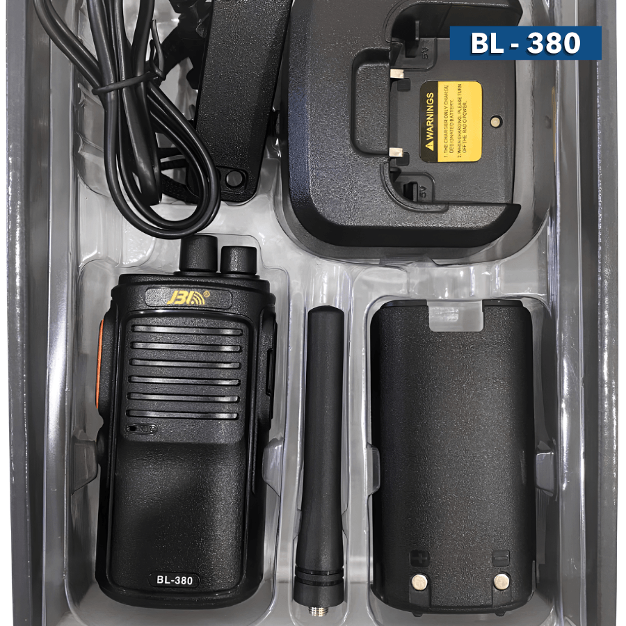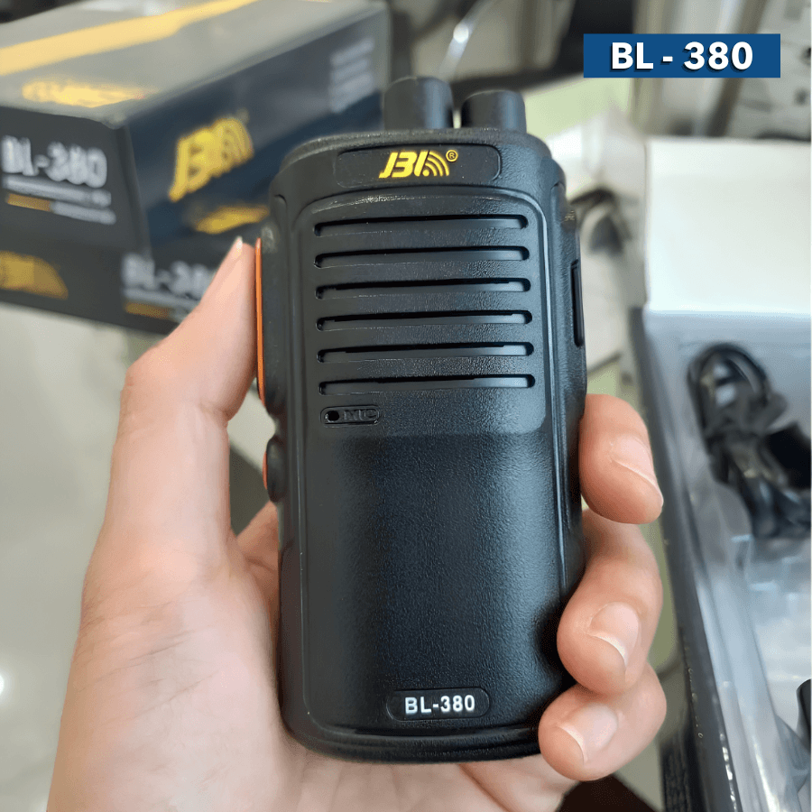 Bộ đàm cầm tayJBL BL-380 nổi bật với dung lượng pin cực lớn và khả năng thu phát sóng ổn định, là giải pháp liên lạc bền bỉ cho các ca làm việc kéo dài tại kho bãi hay công trường.