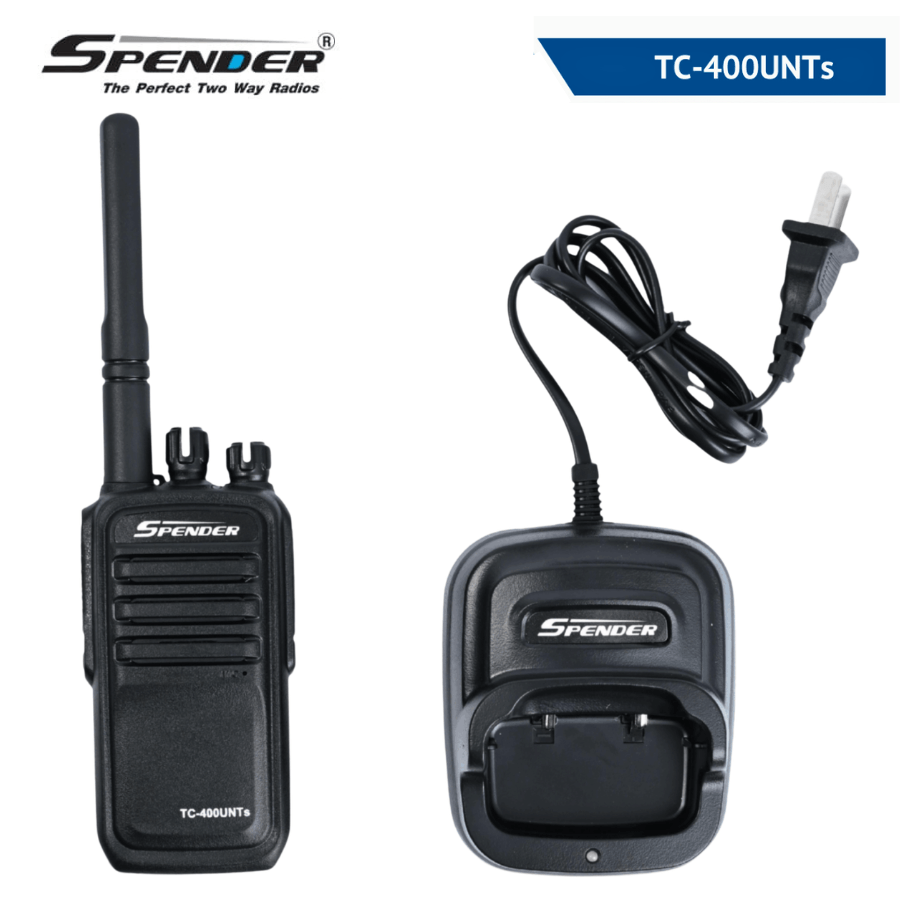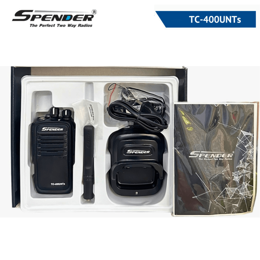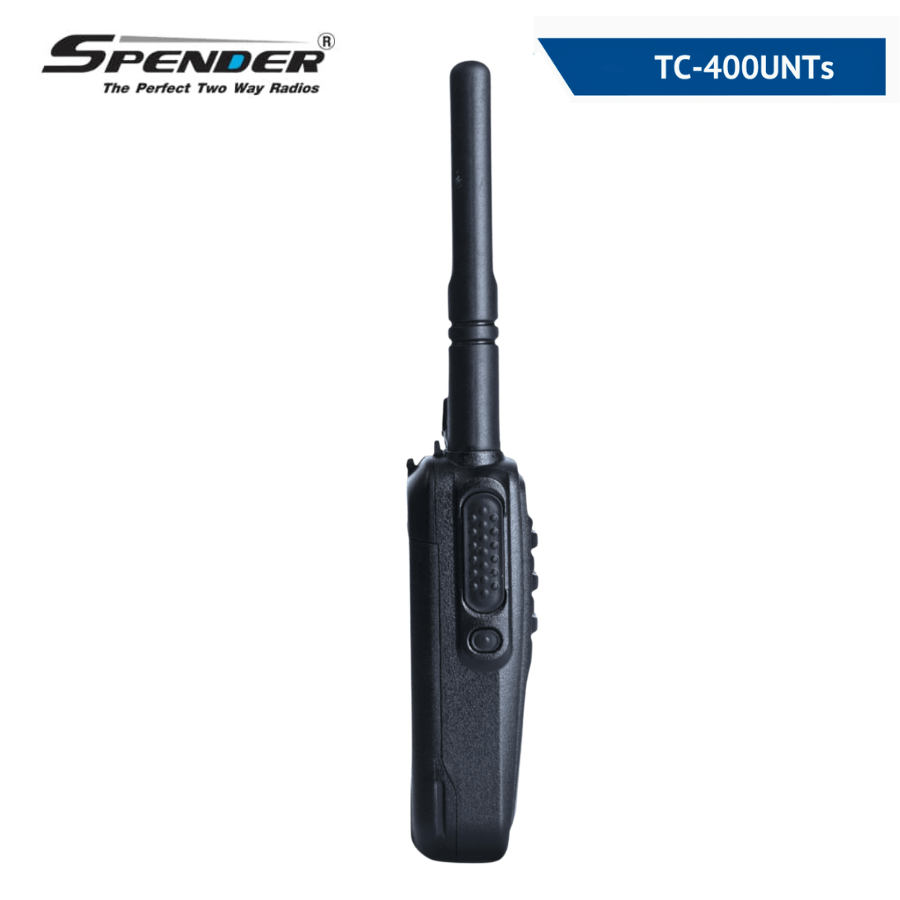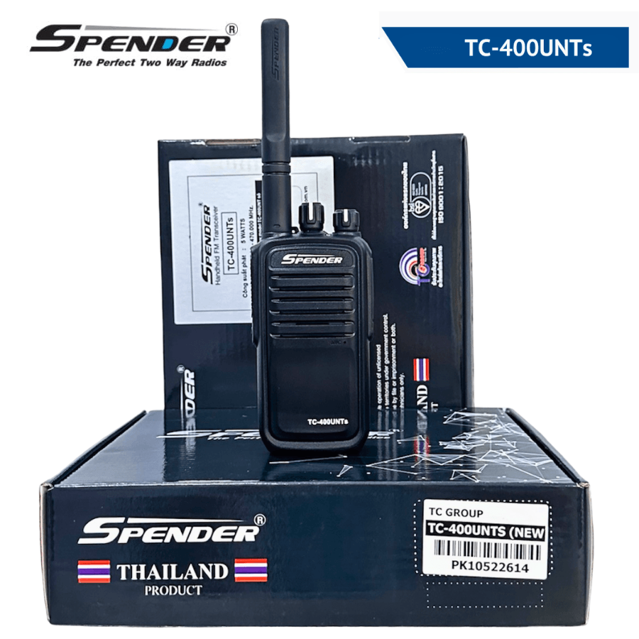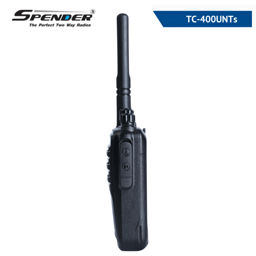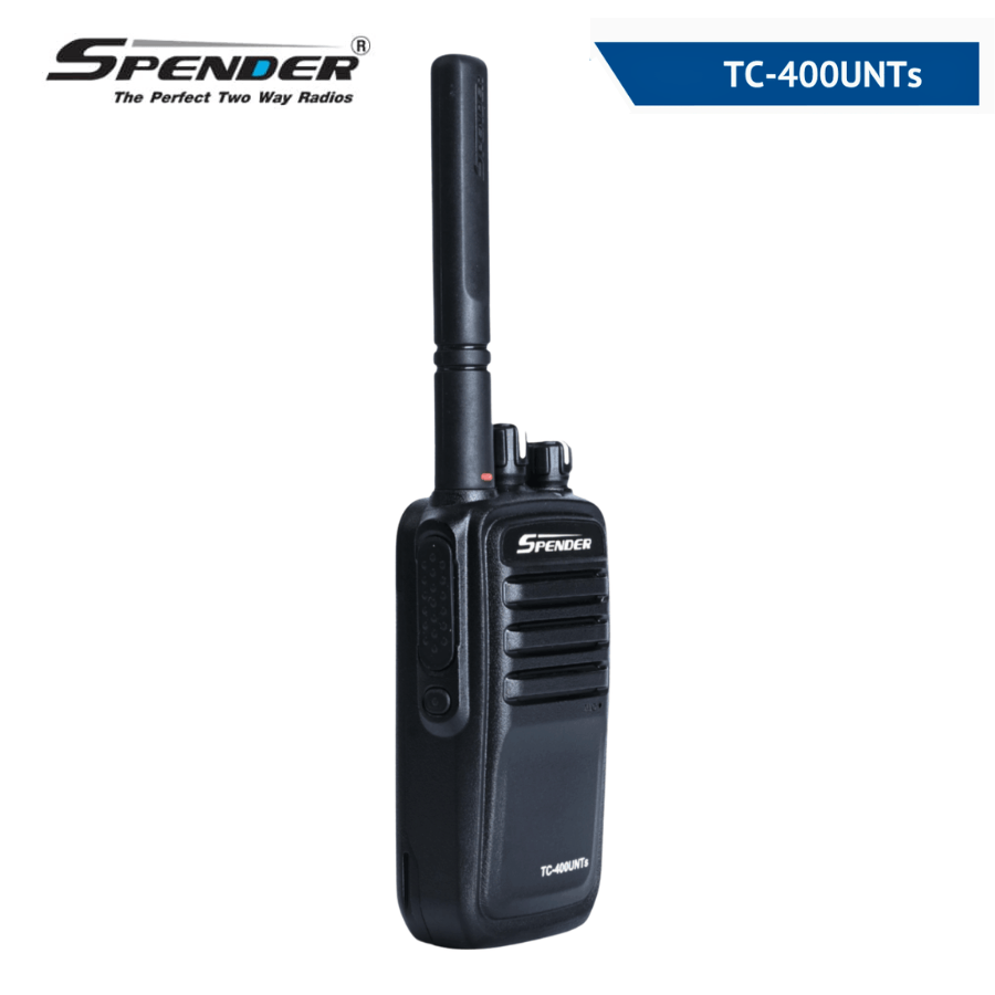 Máy bộ đàm cầm tay Spender TC-400UNTs là dòng máy bộ đàm cầm tay UHF chuyên dụng đến từ thương hiệu Spender (Thái Lan). Đây là phiên bản nâng cấp của model TC-400UNT, được cải tiến về chất lượng âm thanh, khả năng phát sóng và thiết kế ăng-ten ngắn gọn hơn