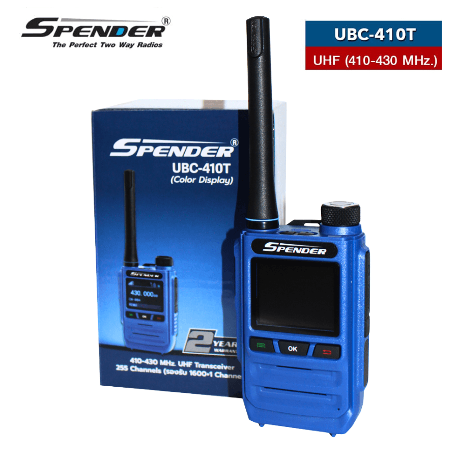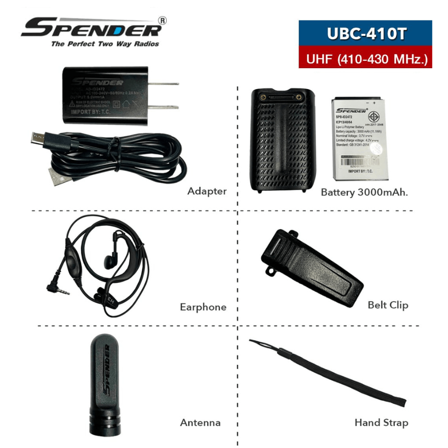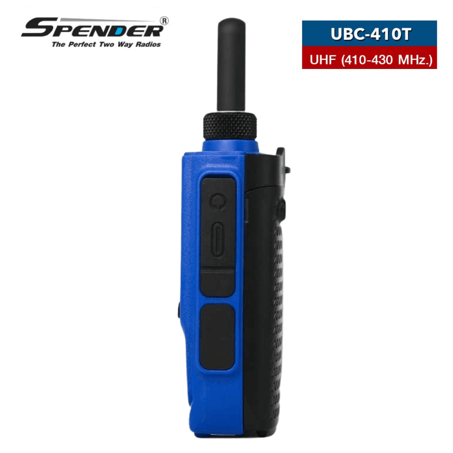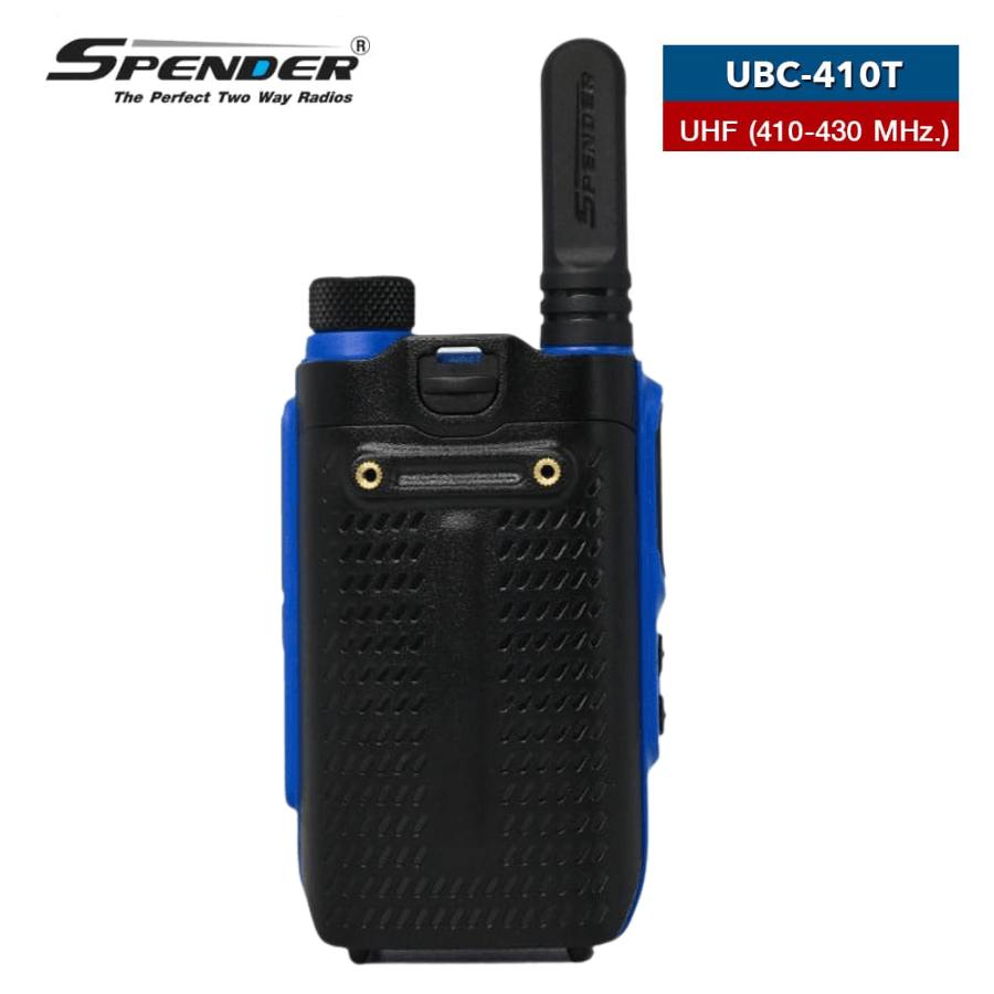 Máy bộ đàm cầm tay Spender UBC-410T là dòng máy bộ đàm cầm tay thuộc phân khúc phổ thông của thương hiệu Spender (Thái Lan). Điểm nổi bật nhất của model này là hoạt động trên dải tần số UHF mới (410–430 MHz)